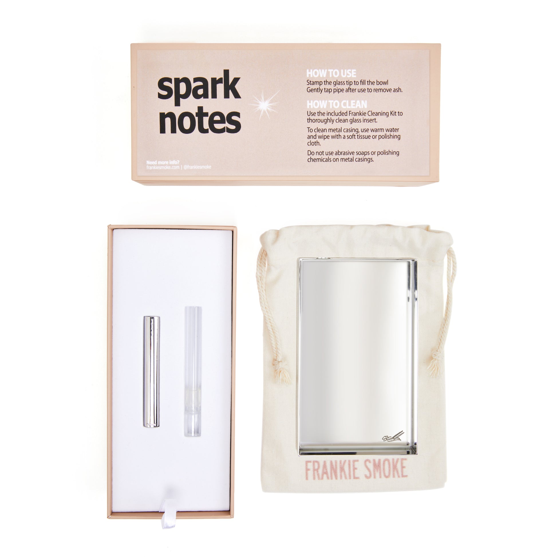 Sets are wrapped and ready to gift! The 1-hitter pipe is in its own show-stopping box (with FRANKIE cleaning kit included), and the Ashtray is wrapped in a pretty branded pouch. The two pieces are then bundled together with twine and sealed with a bow.