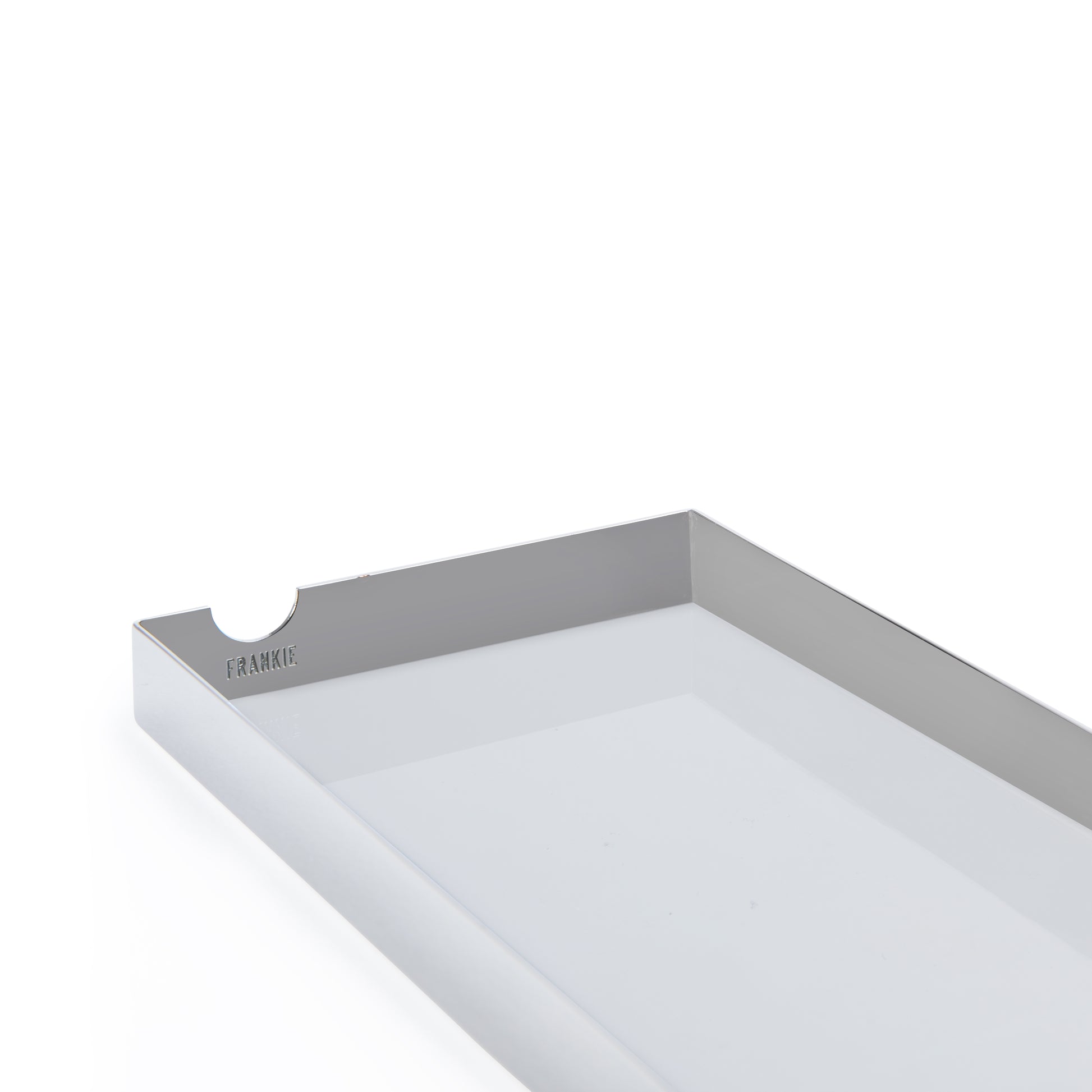 The FRANKIE ashtrays act as an art piece on coffee and bedside tables. Each tray is specially made with durable precious metals while maintaining its main purpose as a function ash-catcher. A clear glass plate sits in the bottom of the tray to protect the precious metal from damage, and a half-circle cut out is the perfect resting spot for a 1-hitter pipe or joint.