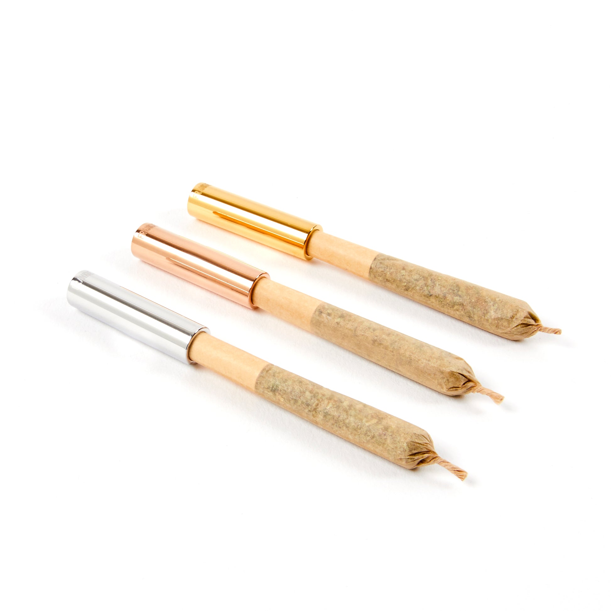 FRANKIE'S trio pack of joint tips includes one Rhodium, one 18K Gold, and one Rose Gold plated metal tip.