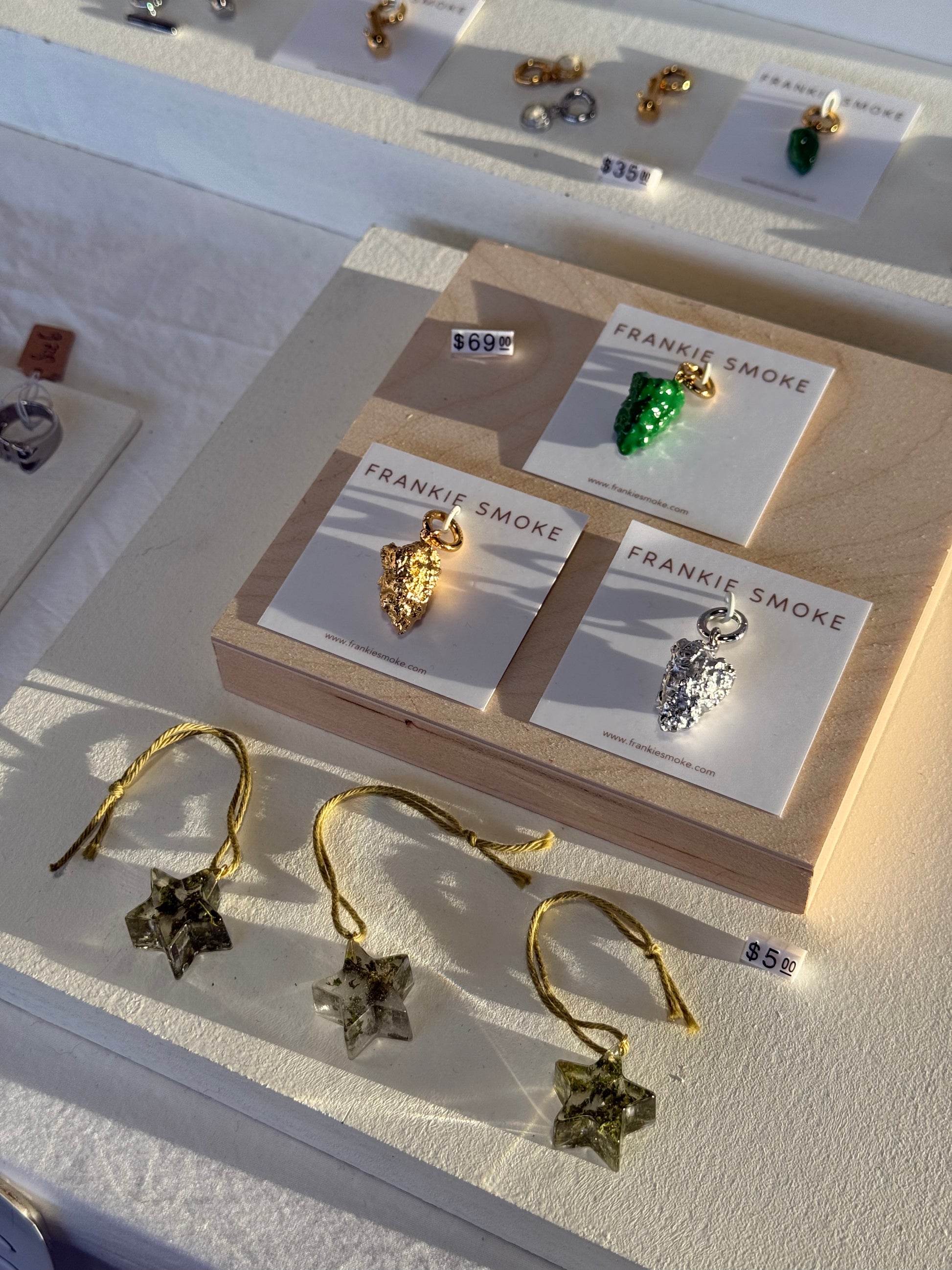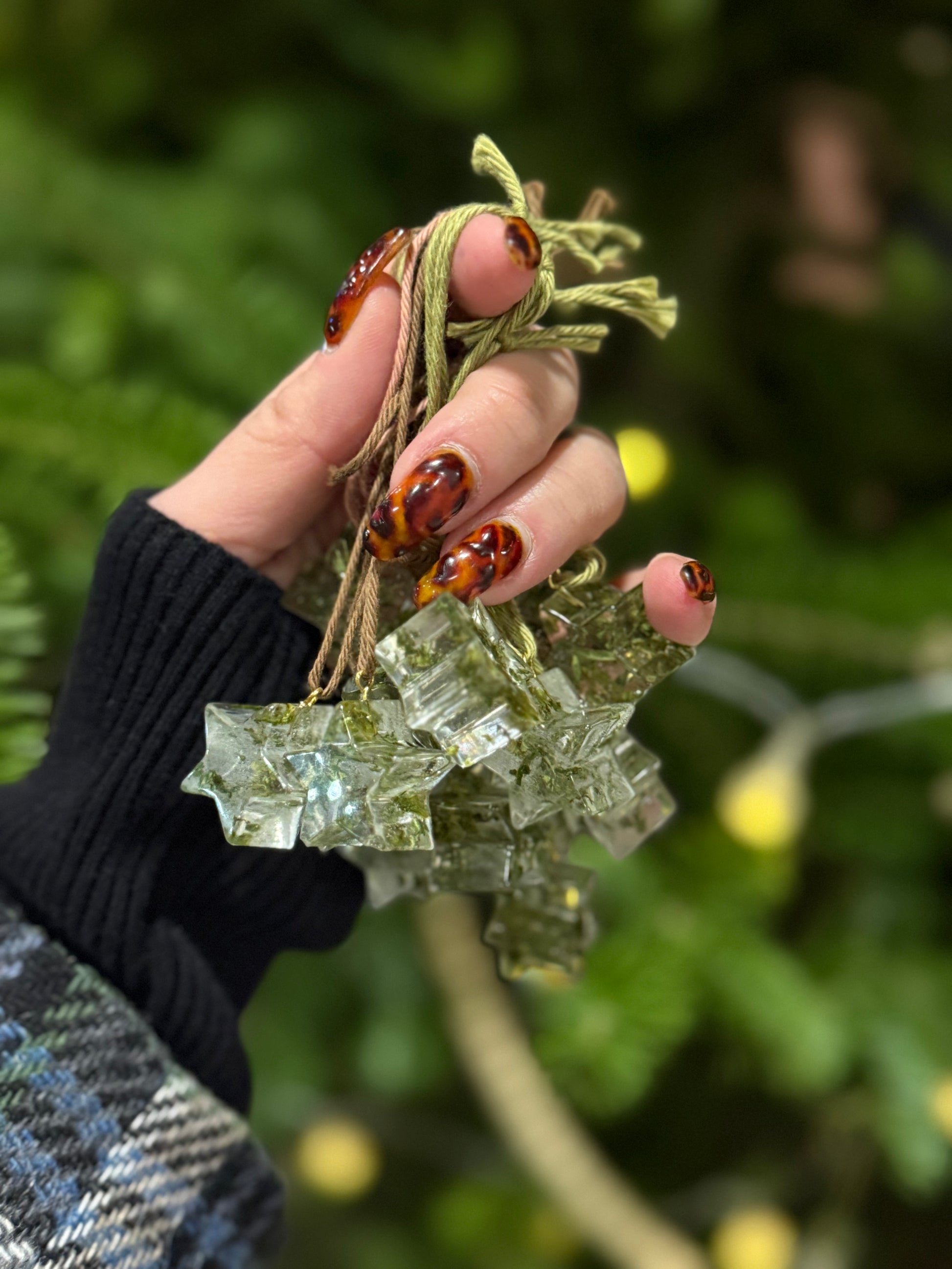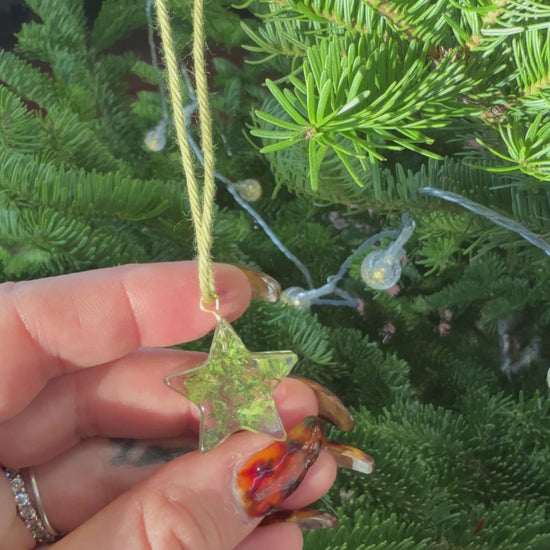 Handmade resin mini stars, with real canna leaf flakes